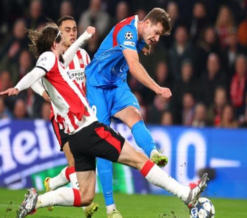 比赛刚开始10分钟,马竞就丢球了。德里乌赫在禁区左侧送出横传,蒂尔直接推射空门得手。埃因霍温的这次反击简单高效。4分钟后,德里乌赫获得绝佳机会,他突入禁区,直面门将。但是,他的射门偏得有些离谱。第25分钟,瑟洛特抢点头球攻门,顶偏了。他非常懊恼。