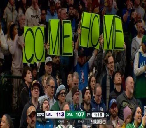 独行侠球迷对着东契奇举大标语:Come Home(回家吧)!