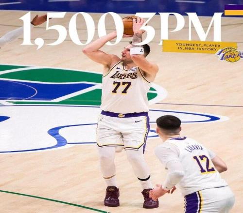 很快,东子以26岁330天,常规赛生涯3分命中数突破1500个,成为了NBA历史上最年轻的球员。