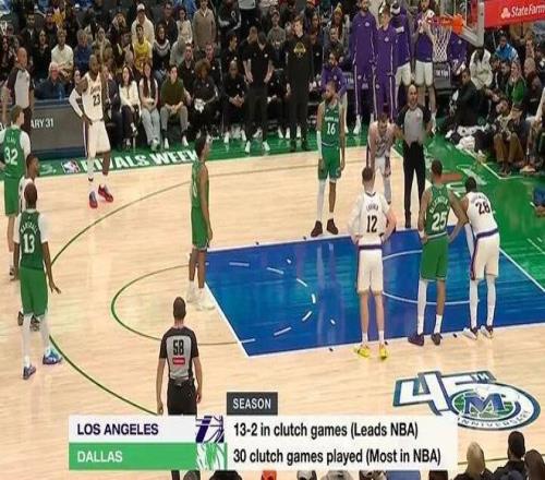 一项数据,湖人关键时刻比赛13胜2负联盟第一,独行侠打了30场关键比赛联盟最多