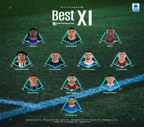 意甲第18轮最佳阵容:劳塔罗、泽林斯基、麦肯尼入选